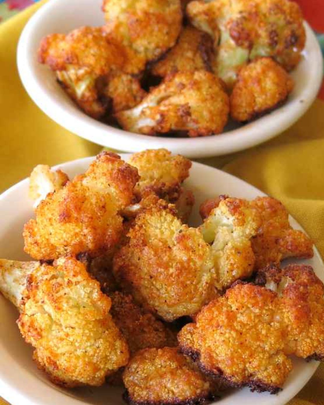 Te pięcioskładnikowe parmezanowe kąski kalafiora dają rezultaty jakości restauracyjnej przy minimalnym wysiłku. Połączenie orzechowego parmezanu i wędzonej papryki tworzy idealnie doprawioną skórkę, a proces pieczenia wydobywa naturalną słodycz kalafiora.