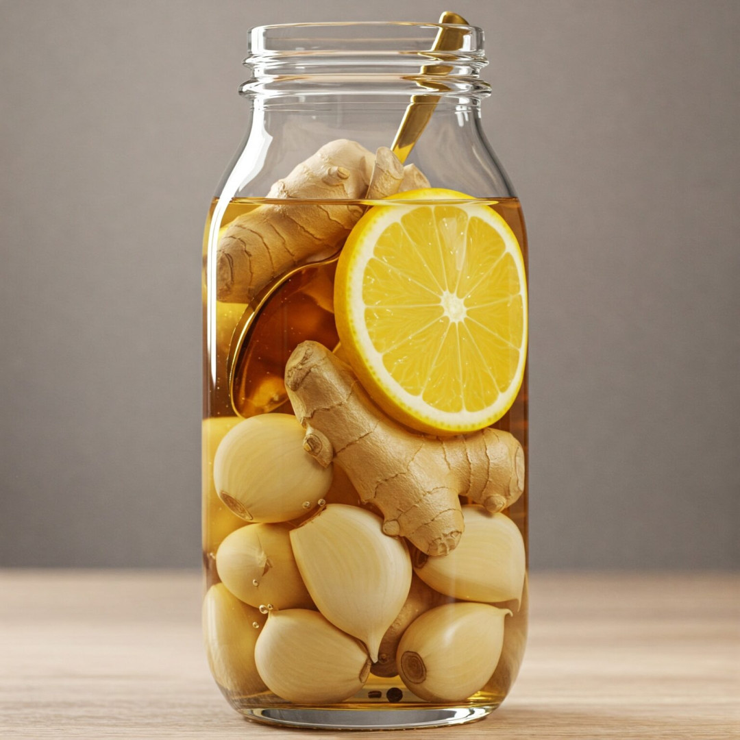 Wzmocnienie układu odpornościowego Synergia czosnku, cebuli, imbiru, miodu i cytryny — każdy bogaty w przeciwutleniacze i związki przeciwzapalne — tworzy solidną obronę przed chorobami. Czosnek i cebula mają znaczące właściwości antybakteryjne i przeciwwirusowe. Imbir zawiera gingerol, znany ze swoich silnych właściwości leczniczych, podczas gdy miód i cytryna są bogate w witaminę C, wzmacniającą funkcje odpornościowe.