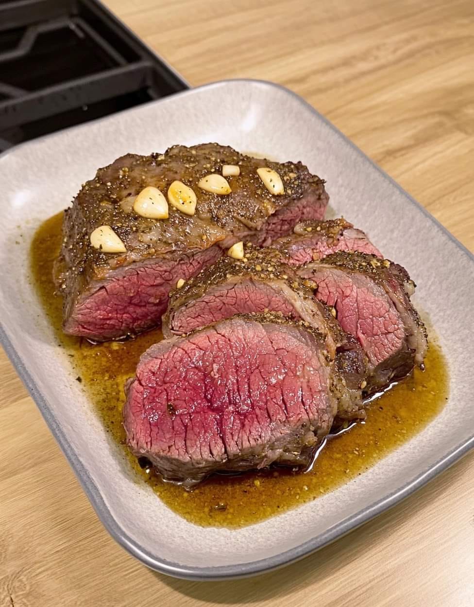 Składniki: – 1 rostbef (ok. 1,2 kg) – 6 ząbków czosnku – 3 łyżki oliwy z oliwek – 1 łyżka świeżego tymianku – Sól, pieprz zobacz więcej na następnej stronie