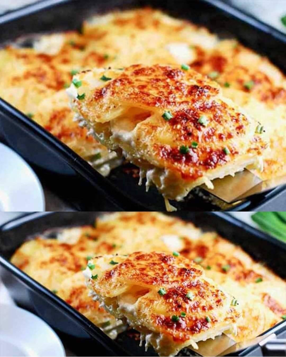 Pyszna zapiekanka ziemniaczana z cebulą Składniki: 2 kg ziemniaków 4 cebule Qs masło 30 cl mleka Qs Tarty Gruyere Szczypta soli i pieprzu do smaku Qs gałka muszkatołowa 1 słoik crème fraîche Qs natka pietruszki Przygotowanie: Kontynuuj na następnej stronie