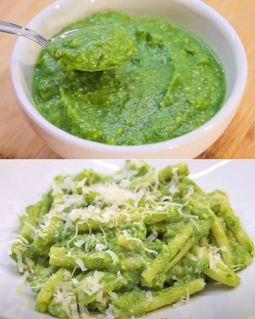 - Makaron wymieszać z pesto, dodać parmezan i olej.
