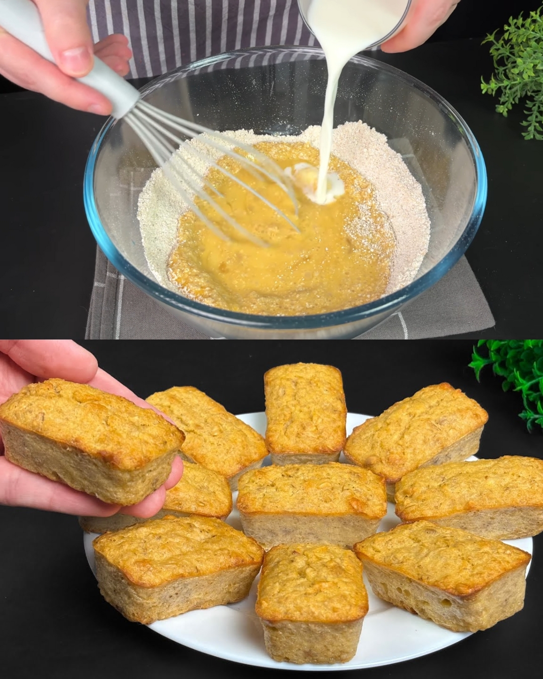 Wymieszaj składniki: w dużej misce wymieszaj płatki owsiane, ciepłe mleko, jajka, wanilię i posiekane orzechy włoskie. Dokładnie wymieszaj, aby mieć pewność, że wszystko jest dobrze połączone.