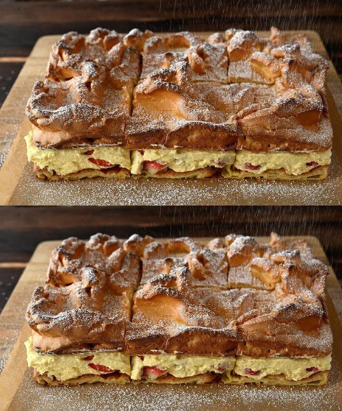 Rozłóż ciasto na blasze do pieczenia o wymiarach 45×35 cm wyłożonej papierem do pieczenia, wyrównując ją szpatułką.